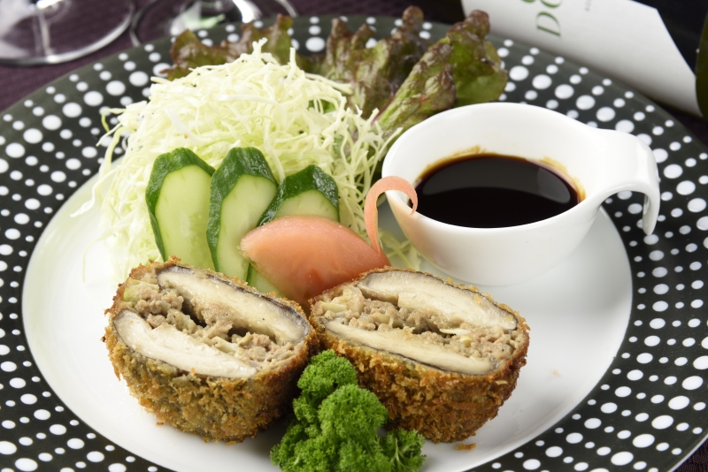 - 4を小麦粉、溶き卵、パン粉の順につけて170℃の油で揚げる。