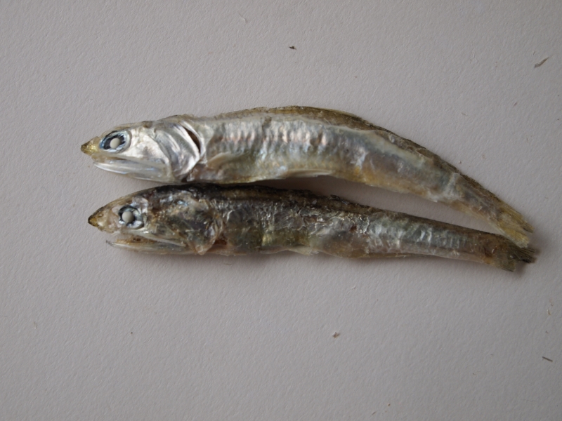 自社船で漁獲したカタクチイワシをすぐに運搬船に乗せ,10人ぐらい入る釜で茹でます。釜の中は業務用の活水器のの水を入れていますので,苦みもなく,頭もやわらかいので魚のおいしさが広がります。