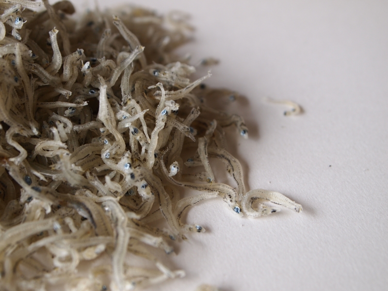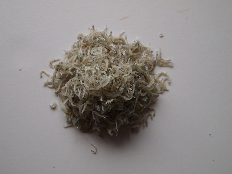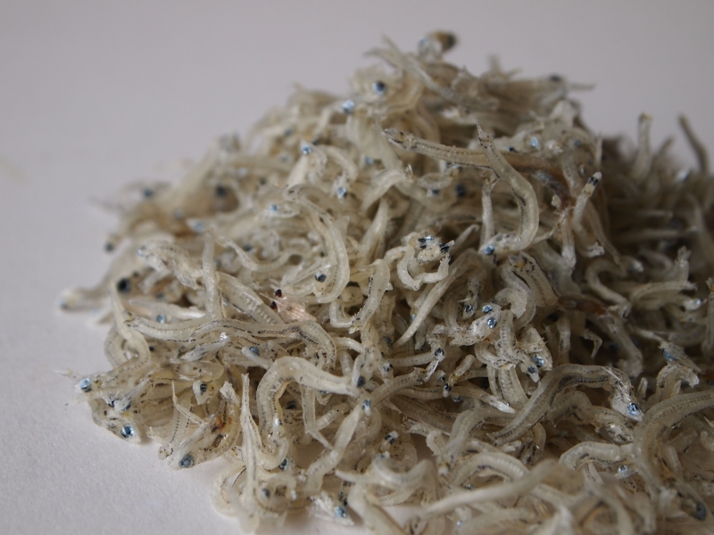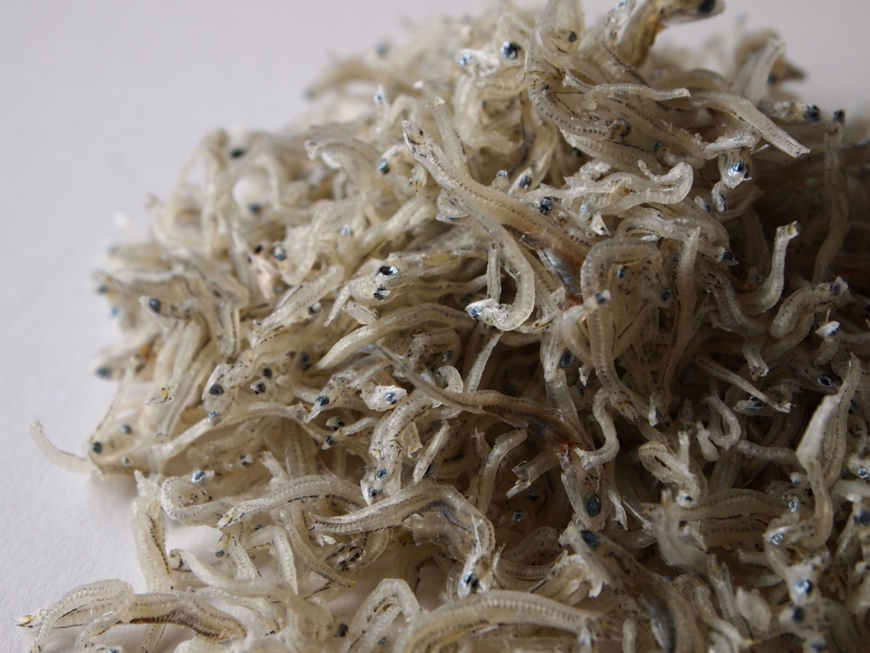 漁獲したカタクチイワシは氷水の中に入れられ,鮮度抜群のまま茹で上げますので,ちりめんがとってもおいしいと好評です。