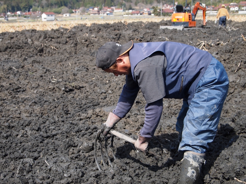 専用の鍬は、岩国にある鍛冶屋さんで曲り具合や枝の長さなどをカスタマイズしてもらってます。作業にできるだけ負担が少ないようにするためです。