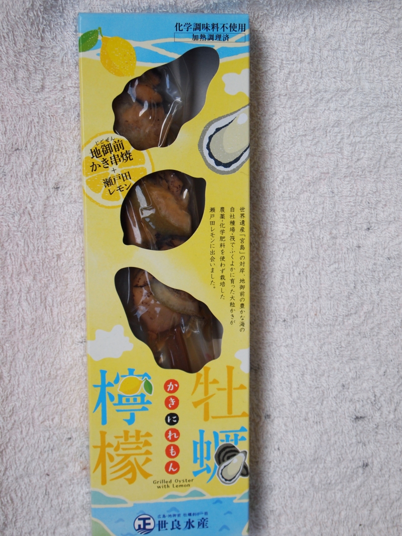 地御前で水揚げされた牡蠣を焼き上げ冷凍することで、一年中美味しさを保ち、選別された大粒の牡蠣と広島レモンを使用しており、広島土産等での目を引く商品です。