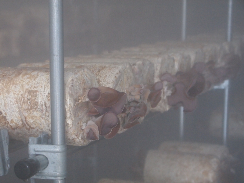温度、湿度を自動制御することにより、通年栽培の難しいきくらげの通年栽培を可能としました。温度管理に木質バイオマス燃料を使用することにより燃料費を抑え、年間を通して安定した価格で、高品質な生きくらげを召し上がっていただく事ができるようになりました。乾燥品のコリコリ食感だけとは全く違う、県内産ならではの特徴ある生きくらげのプルップルッ食感をお楽しみください。