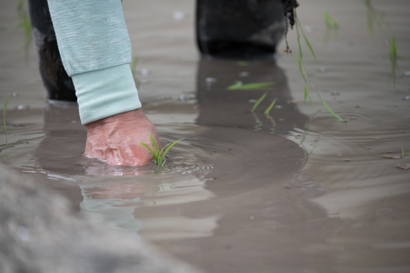 田植えは、毎年5月。苗と苗の間隔や深さによっても育成状態に差が出てしまうため、田のある場所や地形などに合わせて慎重に判断しながら植えていく。そして9月に黄金色の穂を実らせ、刈取りするまでの3~4ヶ月、毎日の細やかな管理が欠かせない。この期間にも酵素を与えるという酵素栽培にはこれまでも取り組んできた。今年はこの酵素の効果をさらに発揮させることができるのでは?と考えて、ある物質を噴霧してみることにしたという。これが「プレミアム」の所以だ。