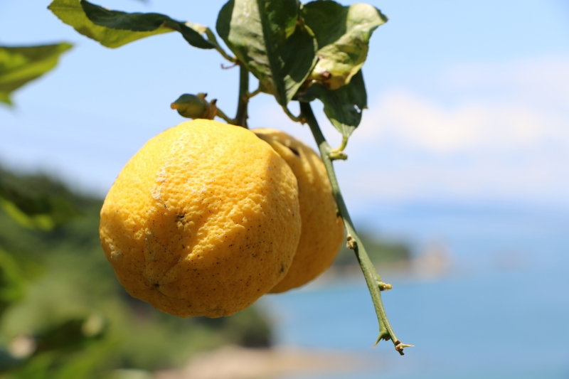 圃場は、段々畑で、水はけもよく、太陽の光と石垣や海からの照り返しをたっぷりうけて、美味しいレモンが育つ条件がそろった環境です。