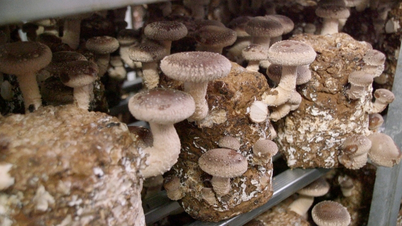 しいたけは、大きく分ければ野菜の仲間。但し、野菜のように光合成という働きによって自分で養分を合成できないため、動物と同じように他の生き物を食物として利用することでしか生きていくことができない。しいたけの食物とは、倒木等の樹木に含まれる糖質、タンパク質、ビタミン、ミネラルなどである。原木しいたけの場合は、植菌という種菌をほだ木に植え付ける作業以外のすべてを自然に委ねる。ほだ木の中で少しずつ菌糸が伸びて原木となり、しいたけが顔を出すまでに2年ほどの月日がかかる。一方の菌床栽培では、しいたけに必要な栄養分を調整した培地を充填した袋で栽培する。この生しいたけ「呉大和」を生産する「あすなろ」も衛生管理の行き届いたビニールハウス内で袋栽培を行う。天候に左右されることがなく、短期間で安定的に計画生産することができる。