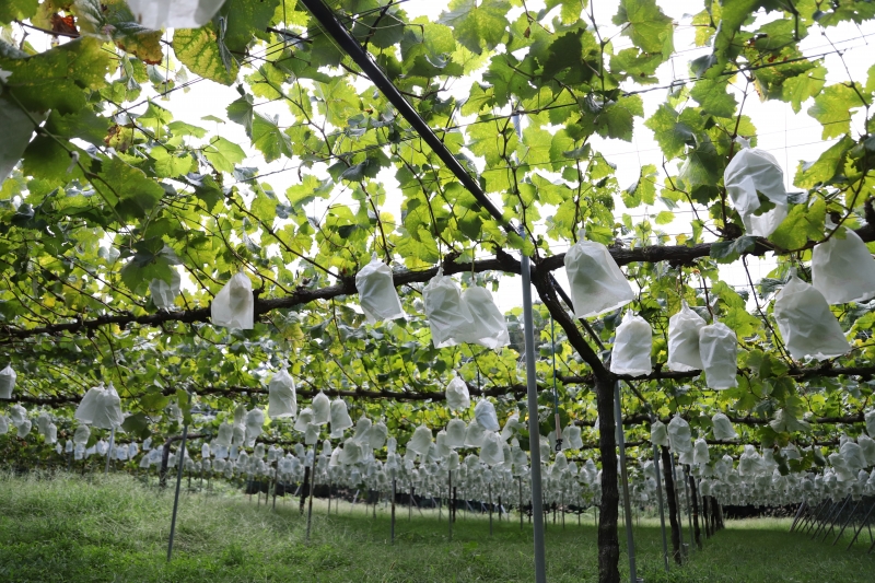 久和田農園は、三原市の臨済宗佛通寺派の本山「佛通寺」の傍にある。県内屈指の紅葉の名所としても知られ、同地域でのブドウの栽培が始まったのは、およそ50年前だという。この地の寒暖差のある気候がブドウ栽培に適しているのだ。当時はまだブドウ栽培に力を入れる農家もまだ珍しい時代であった。