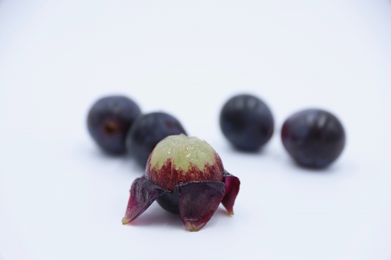 果皮と一緒に食べるとぶどう本来の味を一層感じられるのでおすすめです。当産地は糖度が高いので果実の甘みと果皮の酸味が甘みを引き立て、おいしくべれます(果皮ごと食べれるぶどうが最近多くなっていますが、ピオーネ自体の食果皮はやや厚めなので少量の果皮でも十分おいしく食べれます)。