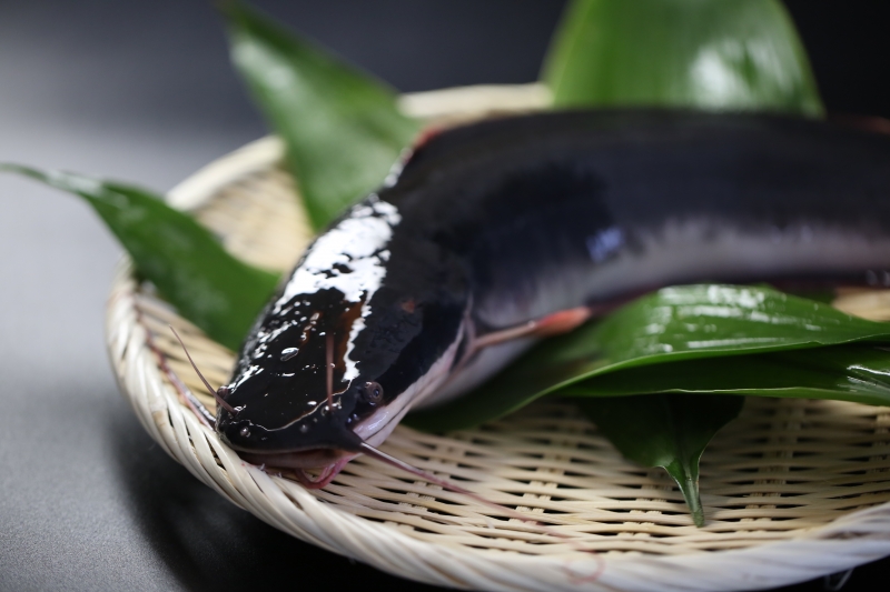 東南アジアに多く生息するヒレナマズを自社にて種苗した東広島市黒瀬産のナマズです。淡泊でクセのないナマズはどんな味付け・どんな料理にも適応する万能な白身魚です。素揚げ、フィッシュフライ、ムニエルなどの洋食としてもお勧めです。程よく脂ののった肉厚の身は、刺身にしても美味しいです。フグを連想させるモッチリコリっとした食感です。きれいな地下水で健康に育てていますので、薬品等は投与していません。