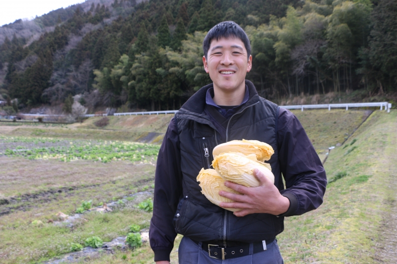 本来その名の通り、白い野菜だった白菜。それが今では、こんな鮮やかな色をした白菜がある。この白菜を育てているのは、安芸太田町の穴ファーOKI。太田川支流が静かに流れる山間にあり、車を降り立った瞬間に深呼吸したくなる。