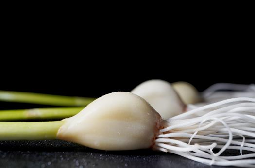 『三日月スプラウトにんにく』は芽も根も丸ごと食べられることが大きな特徴で、特にオススメの調理方法は「天ぷら」です。にんにくの実はホックホク、根はパリパリで、一度食べるとクセになること間違いなし。その他にも「唐揚げ」「ナムル」「フリッター」など、調理の幅が非常に広く何度でも食べたくなる逸品です。