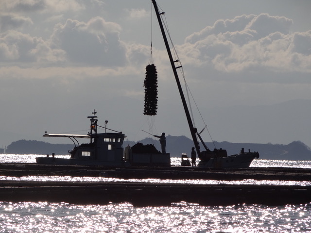 牡蠣の最盛期、収穫は朝7時から始まります。