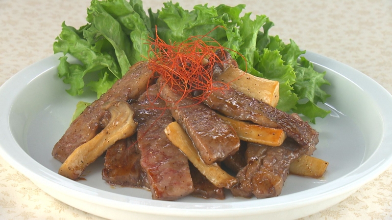カルビとエリンギの甘辛醤油炒め