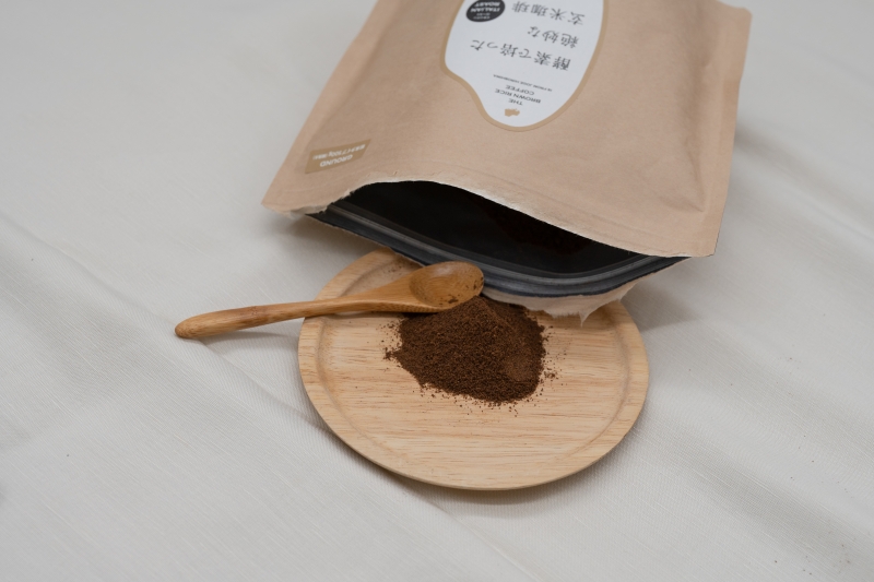 弊社は、美味しい米作りに最適な環境の上下町にて、酵素と光触媒を散布しつつ育てた、食味値と味度値の高いブランド米「四八米(しはちまい)こしひかり酵素プレミアム」を育成してきました。その玄米を珈琲にしようと思い立ち、試作を重ねて玄米珈琲を完成させました。食味の高い米を使用しておりますので、味に深みやほのかな甘みがあります。ノンカフェインでありながらとても美味しい飲み物に仕上がりました。さらに栄養素も多く含まれており、健康にもとても良いものです。古く漢方の世界でも、黒焼きの玄米が妙薬として用いられた歴史があります。玄米を焙煎することで玄米の栄養はもちろん、新たに玄米ポリフェノールやミネラルなどが生まれ、身体の芯からぽかぽか温め,炭の吸着力と相まって、体内の大掃除をしてくれます。健康効果に加えてとても美味しく飲みやすいという点において特別な商品です。