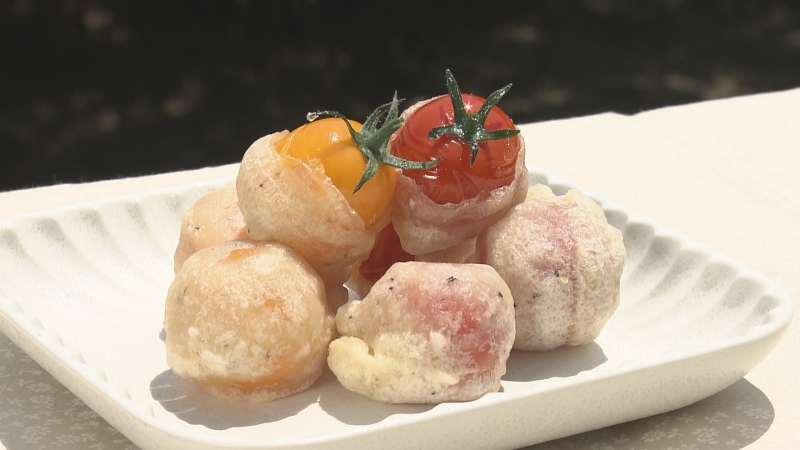 広島県産応援登録制度に登録されている上野園芸の「空宙トマト」が、テレビ新広島「海と大地のひろしま食堂」で紹介されました! トマト本来の味を引き出すために、根も実も宙に浮かせて育てられる「空宙トマト」。 地面から完全に離すことで水分をコントロールし、パイプの中の根に水分ストレスを与えることで、トマトの甘みを引き出します。 また、地面からの病害虫に侵されるリスクの少ないトマトです。 番組内では「プチトマトのフリット」が紹介されました。