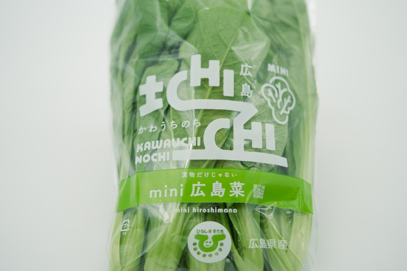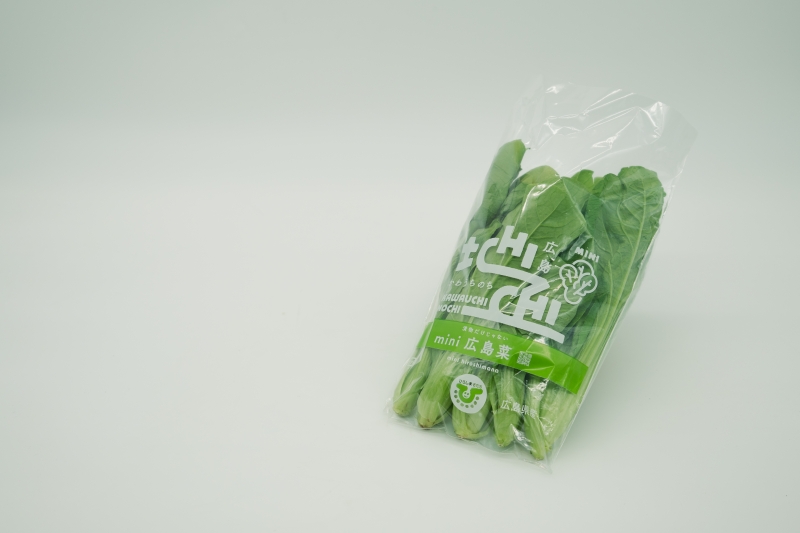 通常、広島菜は1株当たり50~60cm、重さ2~3kgと、十分に成長してから収穫されるのですが、ミニ広島菜は種まきして1か月~1か月半で、まだ若いうちに収穫します。そのため、大きさはわずか20cm程度。小さいながら広島菜特有の風味を有し、食感は柔らかく、色々な料理に重宝します。