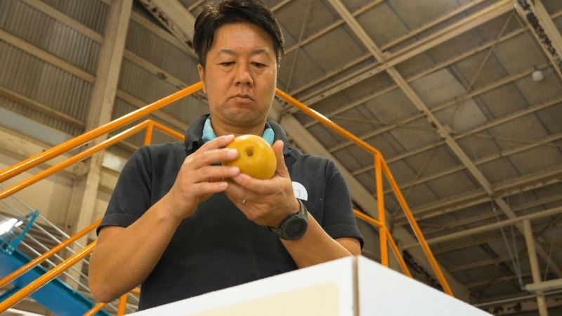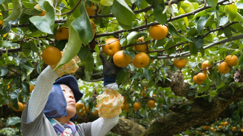 そして、美味しい梨に育つための果実の管理。どの段階にあっても、常にスタッフが目を光らせ、梨がより良く育つ環境づくりを手助けしています。