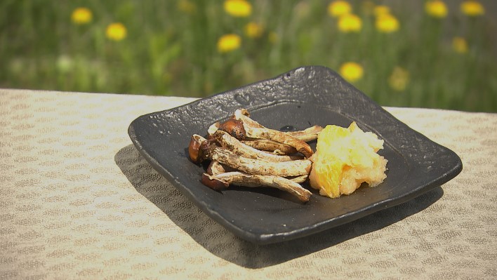 有限会社世羅きのこ園の「松なめこ」は化学農薬不使用で、安心安全をモットーに管理された施設の中で栽培されています。市販のなめこと比べて大きさは10倍から20倍と大きく、素焼きで食べるとその香りと食感は松茸に引けを取りません。番組内では「松なめこの網焼き 柑橘おろし添え」が紹介されました。