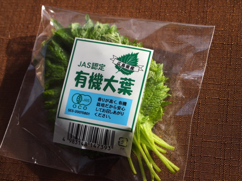 名前は分かりやすく「有機大葉」としてます。広島県産有機大葉は弊社のみ。