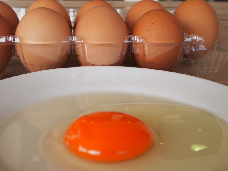 パプリカを豊富に含んだオリジナル特徴飼料により、鮮やかな黄身色を実現した卵です。