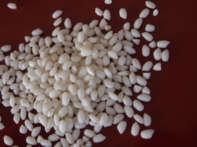 ヒメノモチは餅米で、甘くて柔らかく粘りが強いのが特徴です。