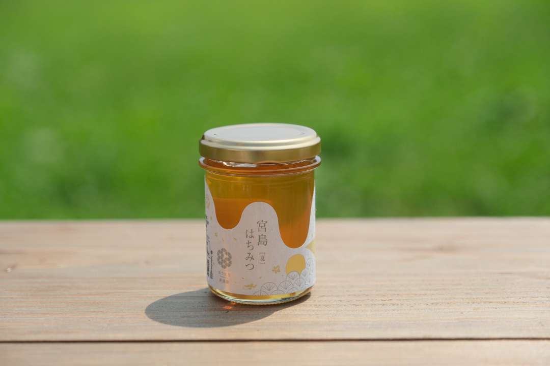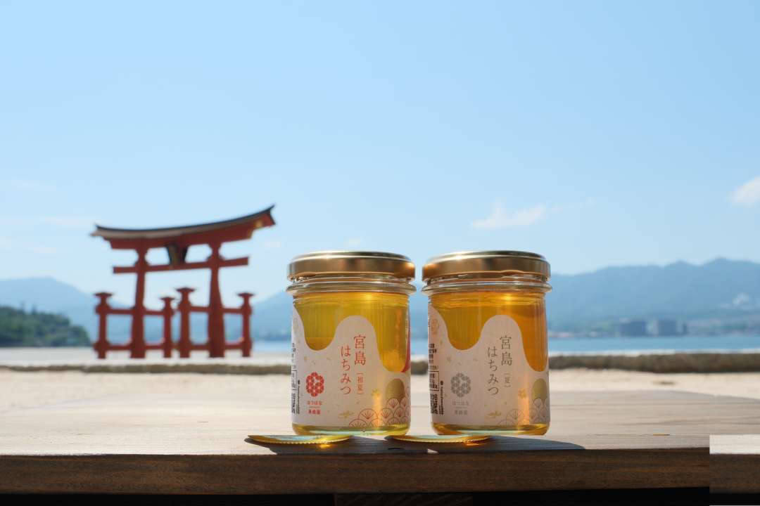 宮島とそこで咲く花をモチーフにしたデザインで、蜂蜜の色の違いがわかるよう、中の見える透明ラベルを使用し、広島県外の方にも宮島の自然の良さが伝わるような商品名をつけました。