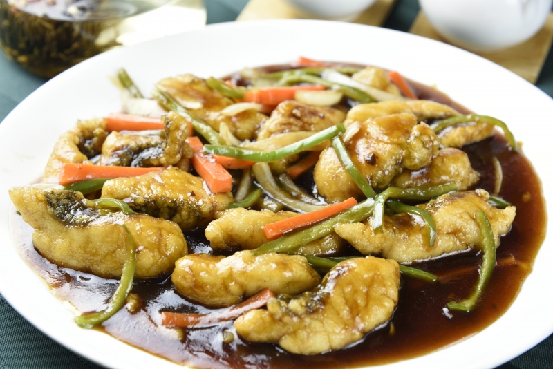 黒鯛は一口大に切って塩、こしょうで下味をつけて片栗粉をつける。