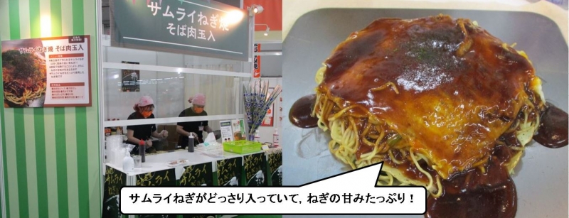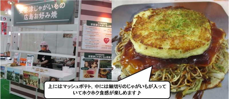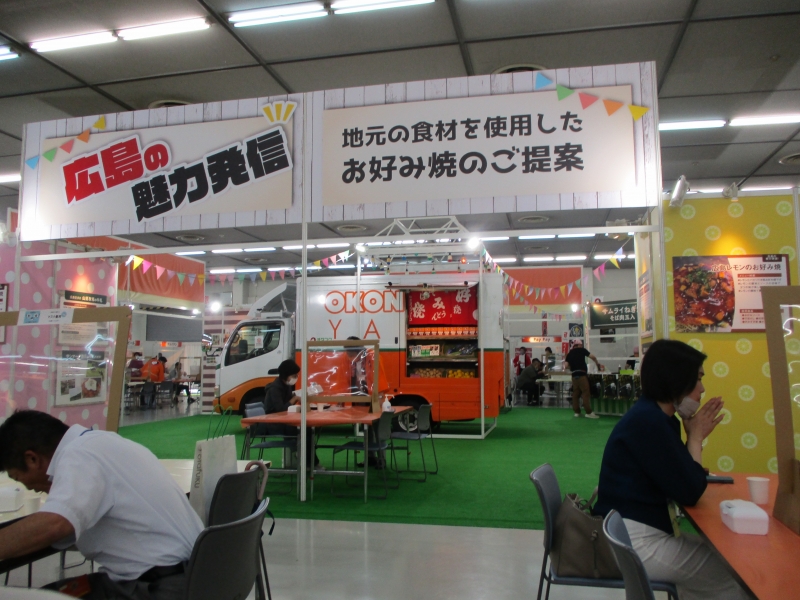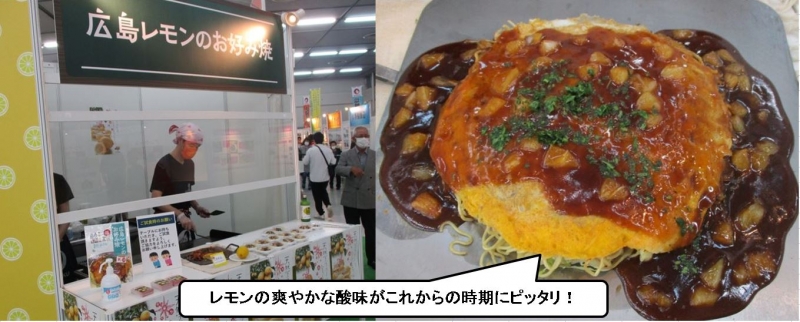 広島市中小企業会館で行われた,オタフクソース株式会社主催の「活力フェア2022」にて,『広島県産応援登録制度』の登録商品である,サムライねぎ,赤土じゃがいも「あきつ美人」,広島レモンを使用したお好み焼きが紹介されました!