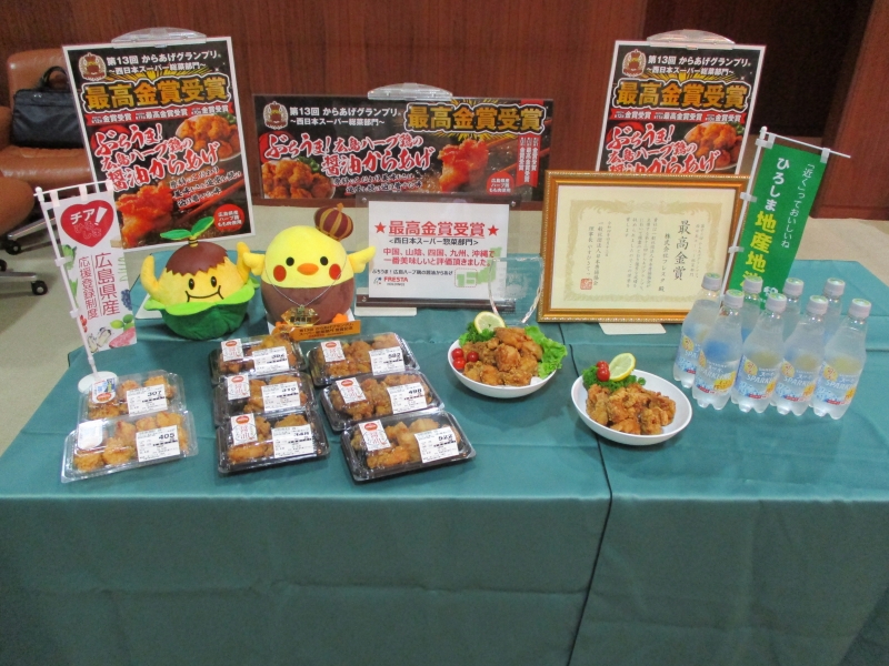 チア!ひろしま(広島県産応援登録制度)に登録されている「ひろしまハーブ鶏」を使用した『ぶちうま!ひろしまハーブ鶏の醤油からあげ』が,フレスタで販売されています。【ひろしまハーブ鶏】(鳥巧商事株式会社)広島県内農場(三原市近郊)・処理工場で生産しています。ハーブ(オレガノエキス(しそ科))・生菌剤(枯草菌)の専用飼料にて飼育。鶏臭の低減,肉色も薄めにできております。 https://www.hiroshima-ouen.com/255 ぜひご購入いただき,お召し上がりください!