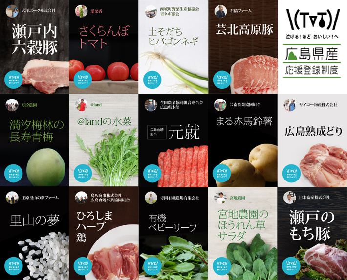 登録商品ページが追加されました。 ○瀬戸内六穀物豚(大洋ポーク) ○土そだちヒバゴンネギ(西城町野菜生産組合 青ネギ部会) ○芸北高原豚(石橋ファーム) ○満汐梅林の長寿青梅(万汐農園) ○@landの水菜(@land) ○広島血統和牛「元就」(全国農業協同組合連合会広島県本部) ○まる赤馬鈴薯(芸南農業協同組合) ○広島熟成どり(サイコー物産) ○里山の夢(庄原里山の夢ファーム) ○ひろしまハーブ鶏(鳥巧商事) ○有機ベビーリーフ(寺岡有機農場) ○宮地農園のほうれん草サラダ(宮地農園) ○瀬戸のもち豚(日本畜産) ※順不同