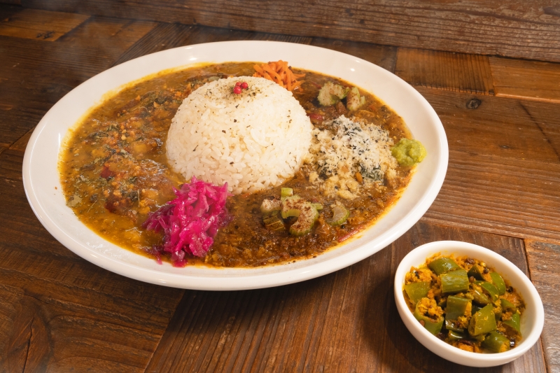 「廿日市ペッパー」トマトパプリカセロリと自家製タバスコのカレー/青唐辛子のトーレン