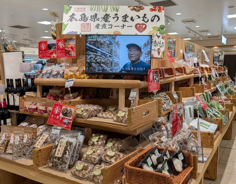 リニューアル前から親しまれていた商品に加え、新たに「空宙トマト」や「松きのこ」、「女鹿平あわび茸」などの商品が加わり、「広島のおいしい」が勢ぞろいする素敵なコーナーとなっています。