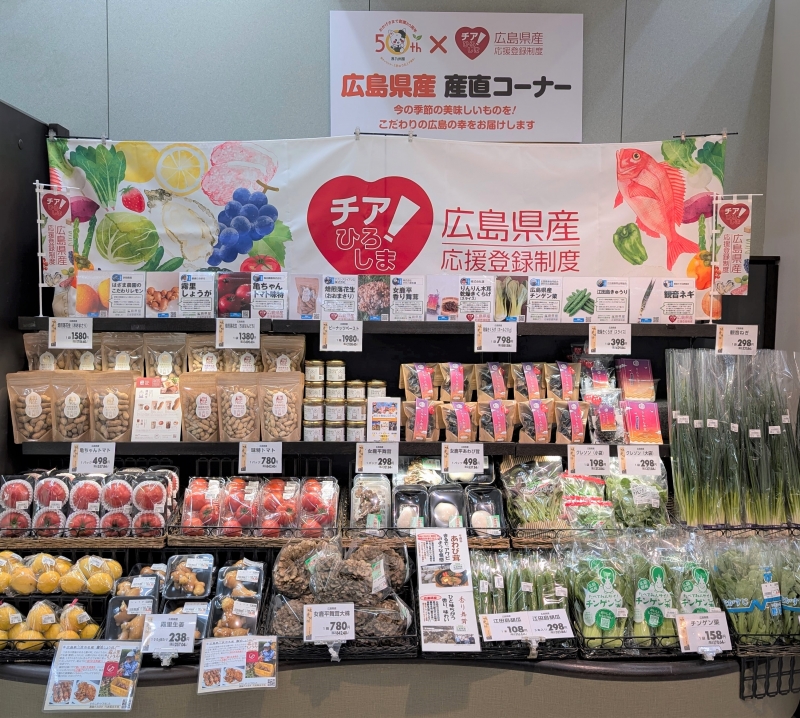 九州屋ラクア緑井店に、チア!ひろしま登録商品を中心にこだわりの広島の幸があつまる、広島県産産直コーナーが2/21(金)に開設されました。