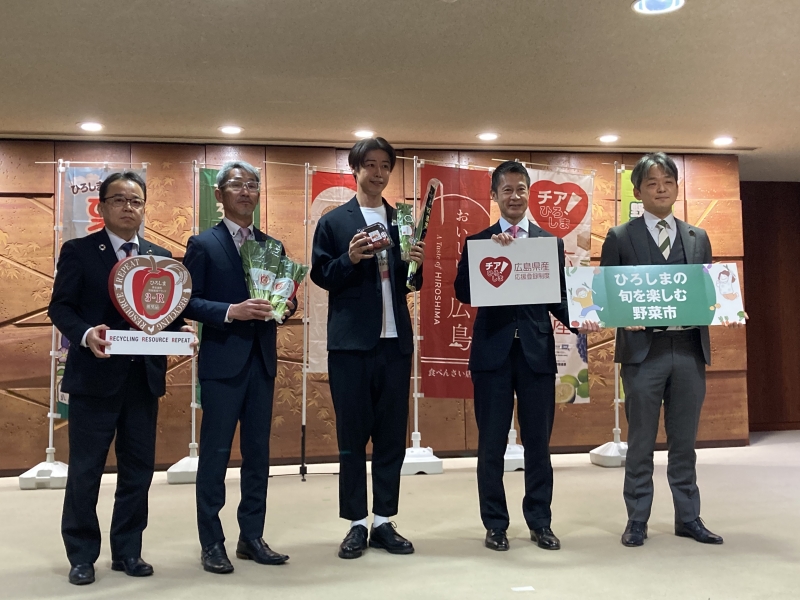本プロジェクトの取組の一環としてイベントを開催することとなり、この報告のため株式会社良品計画、JA全農ひろしま等の方々が湯﨑知事を表敬訪問されました。