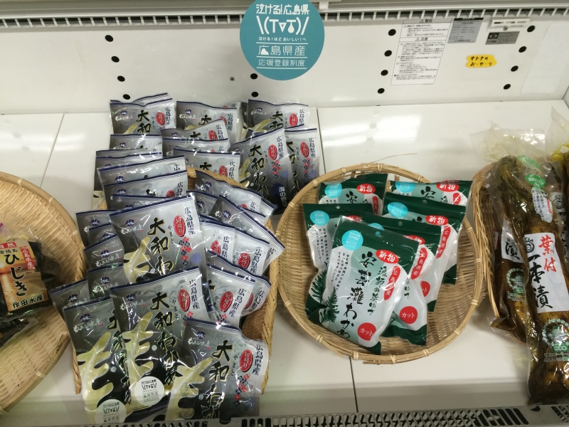 現在は沖田さんの安芸灘わかめ、もみじ水産さんの塩蔵大和わかめ、大和しらす、三次ワイナリーさんの巴シリーズのワイン、JA広島菜漬けセンターの本場川内産広島菜漬、本場川内産広島菜本漬、広島北部農業協同組合さんの三矢えびす茶を取り扱っています。
